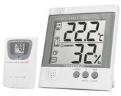 Our most popular remote thermometer can read temperatures 100 feet away. Module transmits on a radio frequency of 433 MHz, penetrating walls, with a range of 300 feet (100 feet under most conditions). The AMBALM001 includes an internal temperature sensor in the console to read room temperature and also includes two remote modules. Easily add more remotes to read and update up to eight remote temperature sensors at the same time from the large digit, uncluttered display. Ideal for Refrigerator / Freezer applications but useful for other temperature applications, the AMBALM001 includes a display with programmable audible and visual alerts when temperature limits are exceeded.