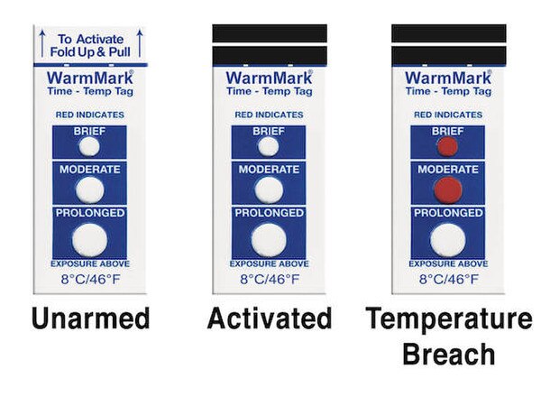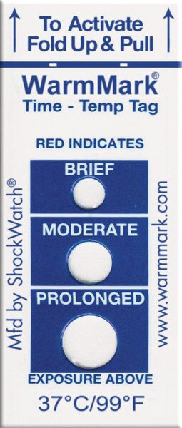 The WarmMark should be located where it will be visible to the receiver of the monitored shipment. The WarmMark can be adhered directly to the product being monitored or located inside the packaging.